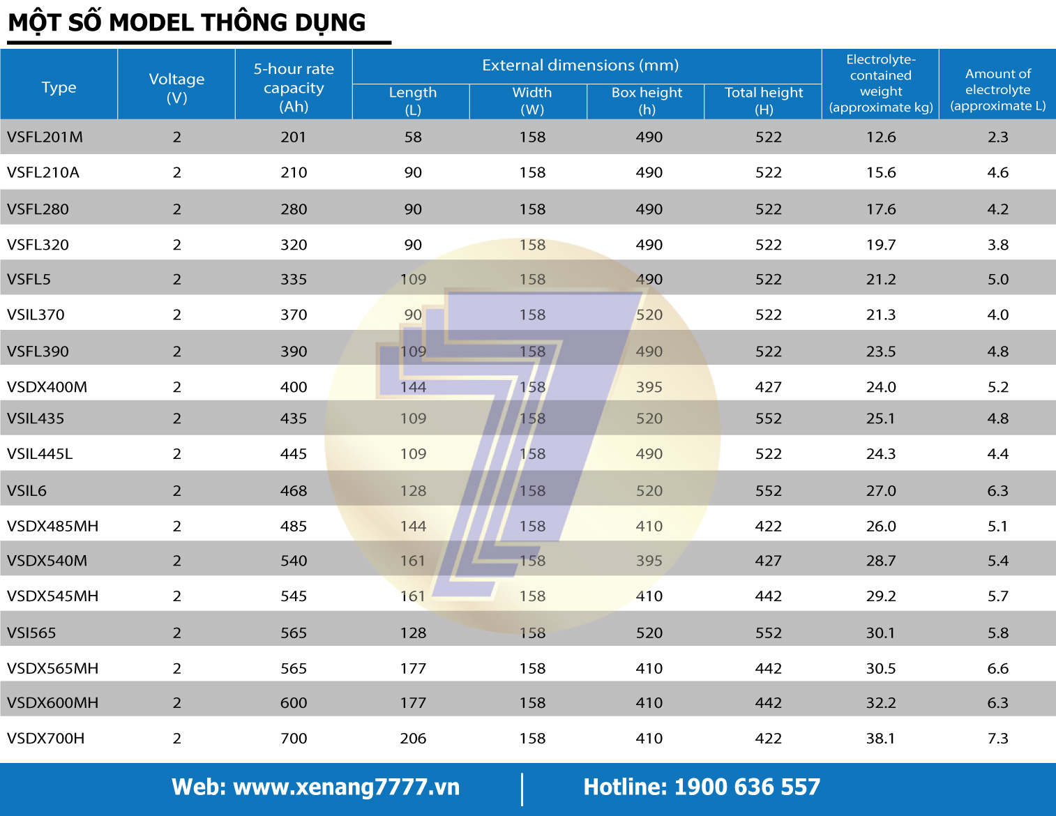 Điện áp 24V, 48V, 72V,…Được sản xuất bởi Hiatchi Chemical, xuất xứ Nhật Bản.