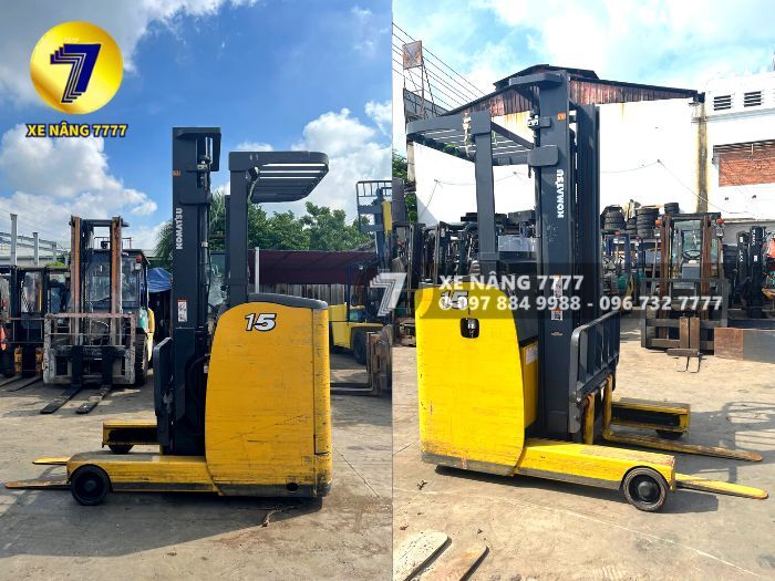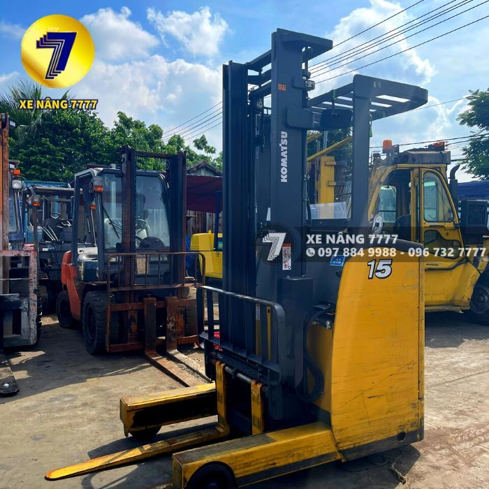 Xe nâng điện đứng lái KOMATSU FB15RL-15, sản xuất năm 2017. Sức nâng 1500Kg, chiều cao nâng 4000mm. Sử dụng bình điện 48V-280Ah, hoạt động êm ái, lý tưởng cho kho xưởng.
