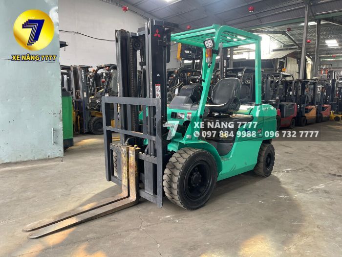 Xe nâng dầu 3 tấn Mitsubishi FDE30D là dòng xe nâng hàng được nhập khẩu trực tiếp từ Nhật Bản bởi công ty 7777, nổi bật với độ bền bỉ và khả năng vận hành mạnh mẽ.