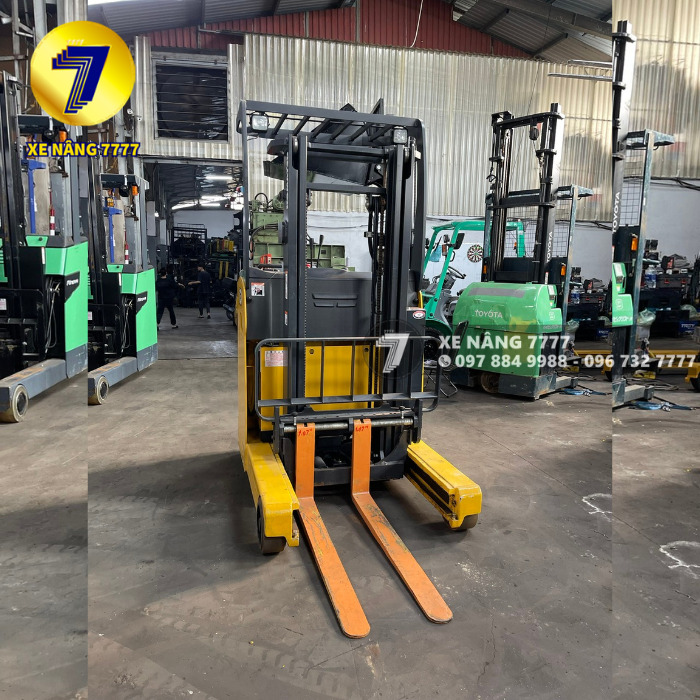 Xe có sức nâng 1.3 tấn (1300kg) và chiều cao nâng lên đến 3000mm, đáp ứng nhu cầu đa dạng trong kho bãi, nhà xưởng.
